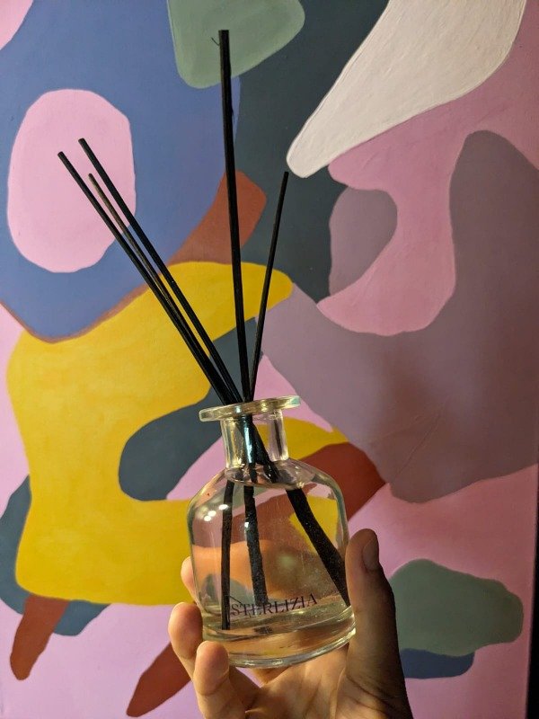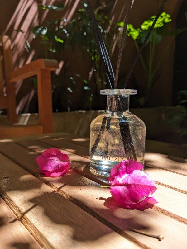 Se colocan las varillas en el frasco, se rotan cada 3 días, y el aroma se libera lentamente,