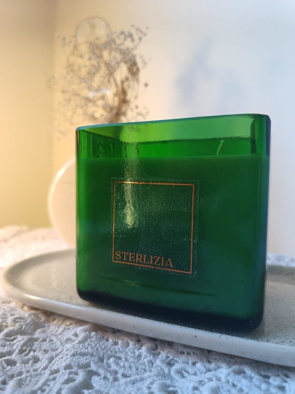 250 gramos/duración +50 horas/Envase de vidrio reutilizable. Realizado con botellas importadas recicladas. Exclusivo Sterlizia.